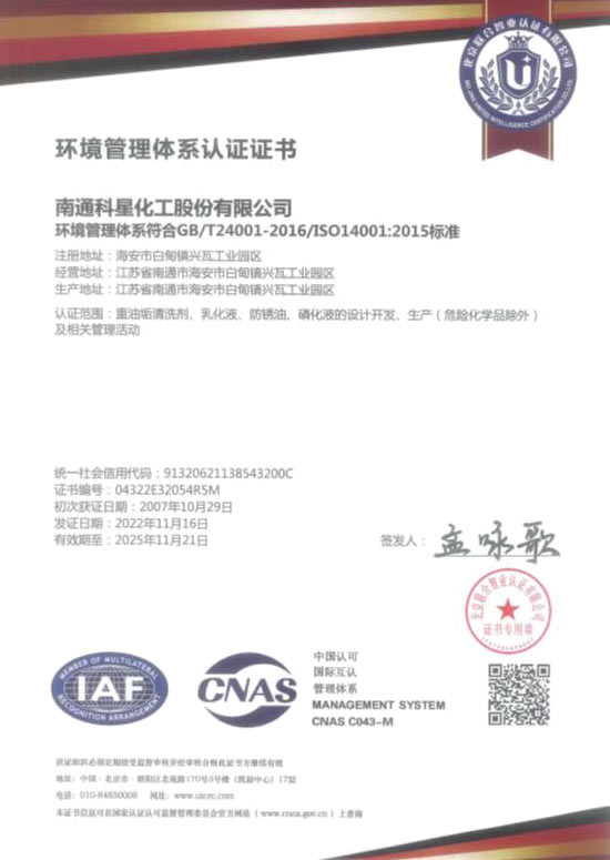 高新技術產(chǎn)品認定證書-NK-微乳切削液